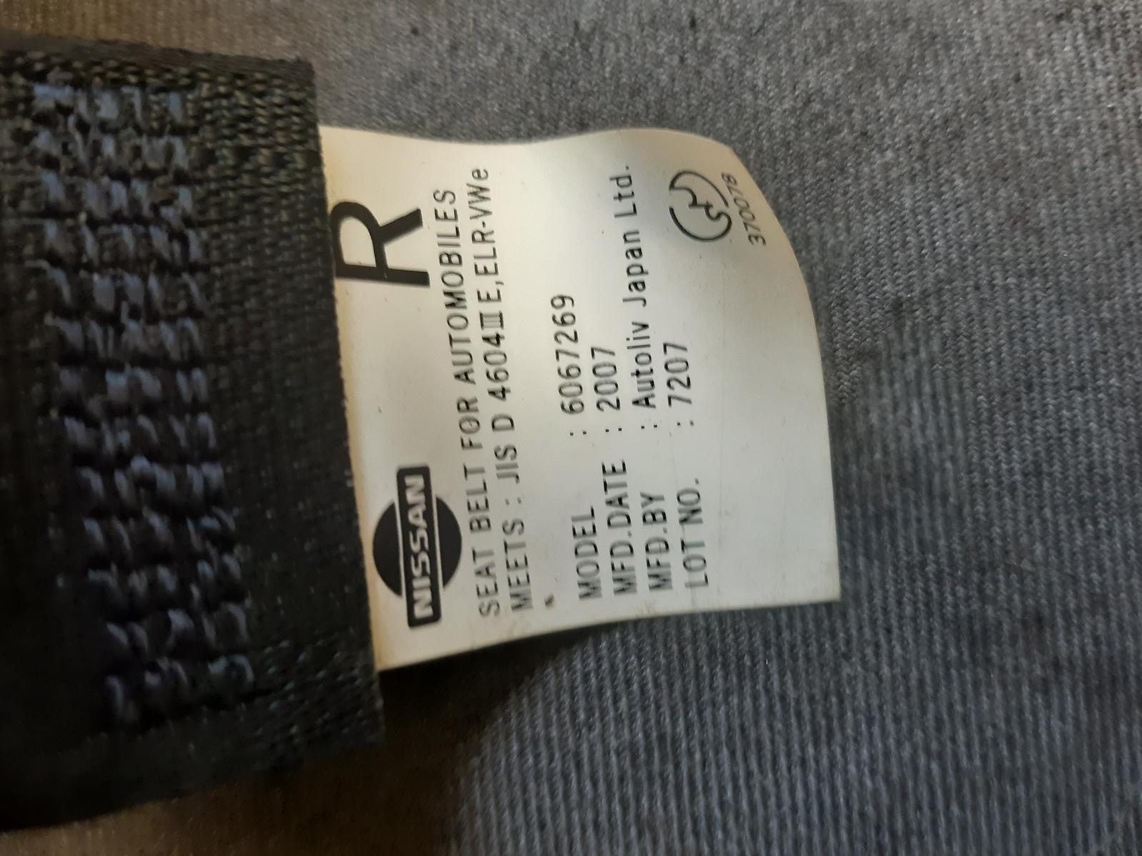 RH FRONT, SEAT BELT ONLY, Y12, 06-18 (NZ ONLY)